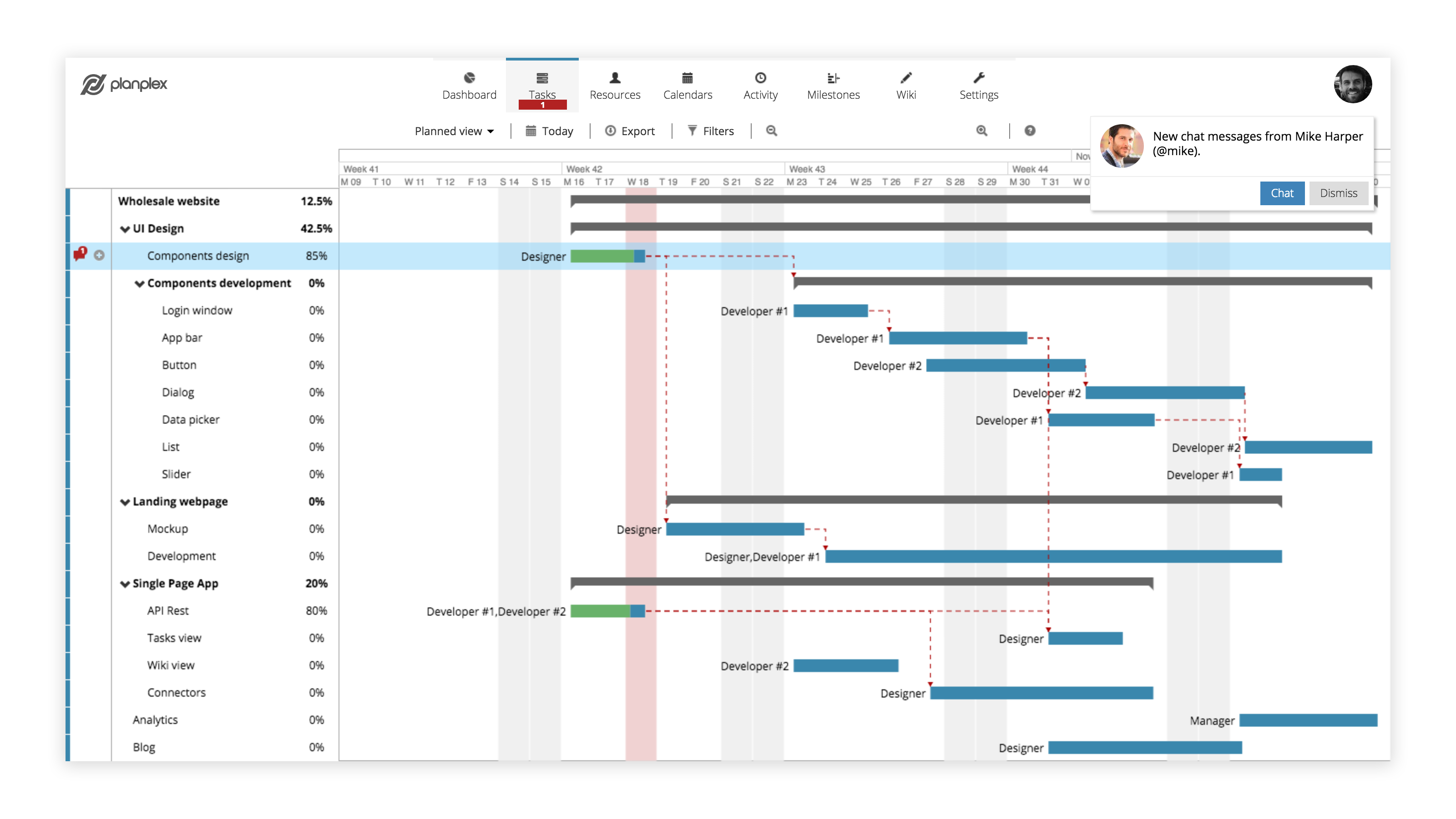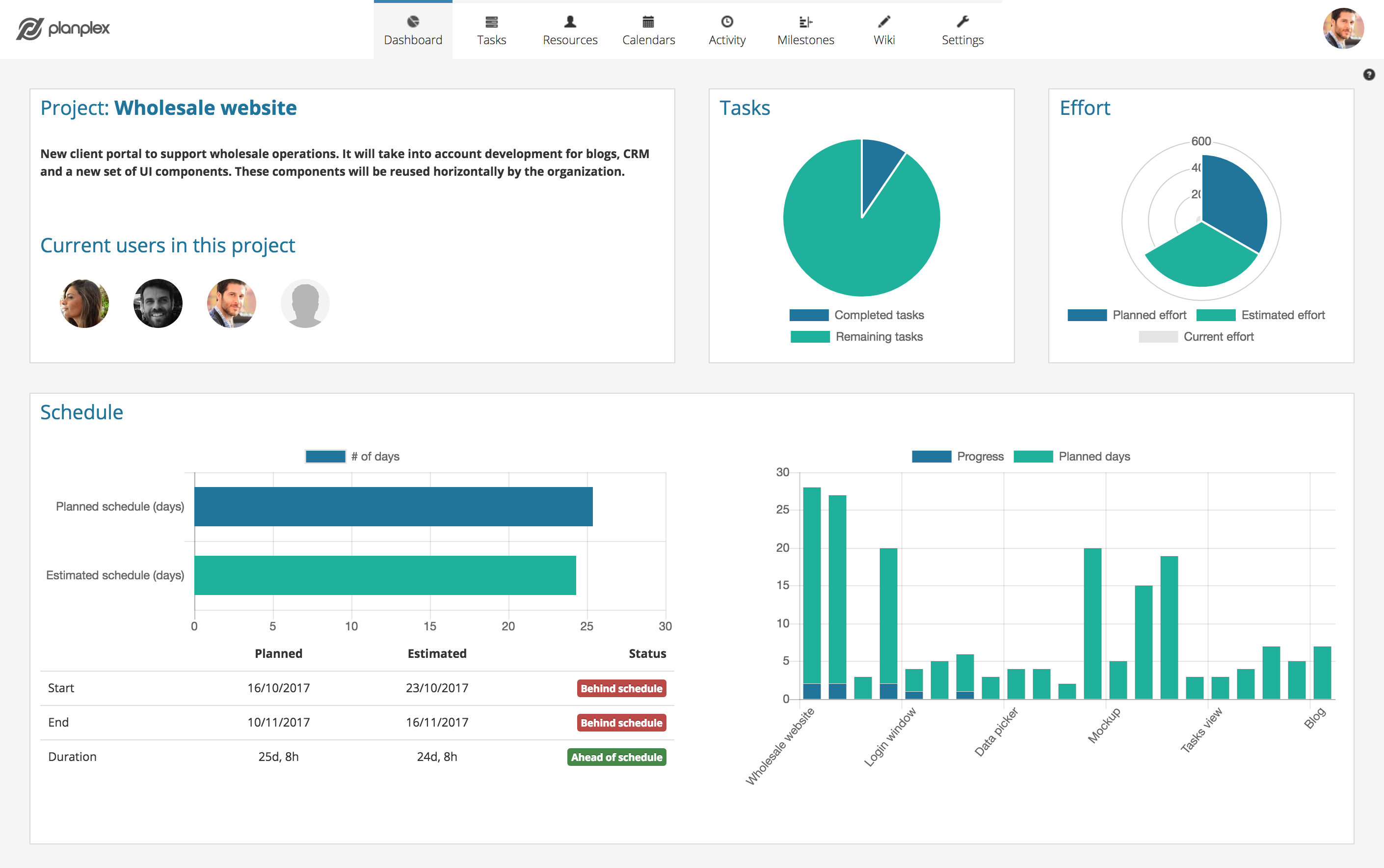 Our planning engine offers all you need to have your project under control at all times. Assign time slots and resources to your tasks and Planplex will estimate the duration and how task dependencies will be affected.