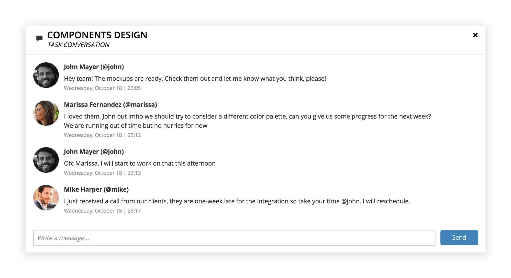 Tasks can be linked with external resources as Git repositories, cloud storage services or CRMs. Perfect for software developments based on GitHub, Bitbucket, CAD tools, art designers...